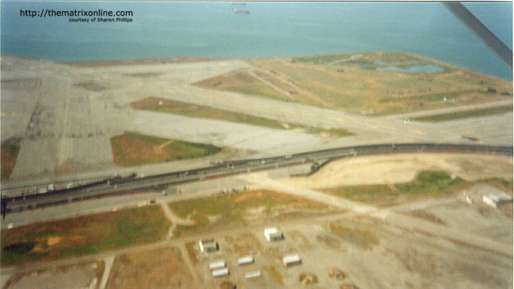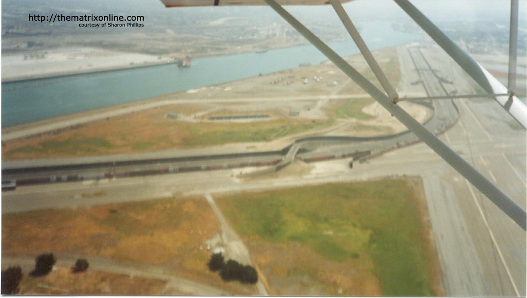 Our friends at The Matrix Online have just posted some new photos from a Matrix Reloaded set. Some are arial shots and others are Manex Studios buildings and a picture, albeit small, of the “Burlyman” logo.